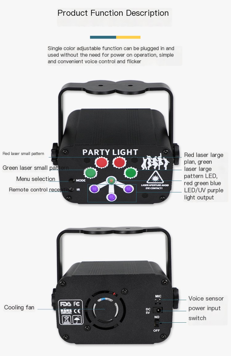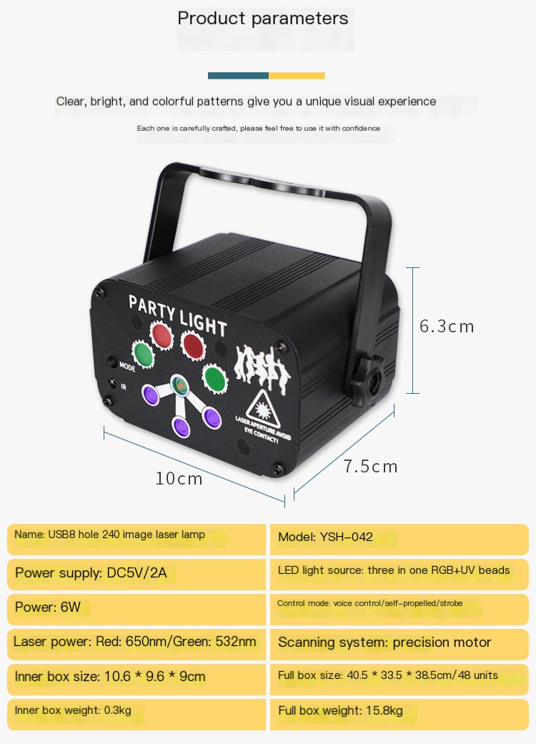 Suitable for indoor use, the Mini Laser Light features multiple specifications, including both UV6 and UV8 holes, allowing you to choose the perfect fit for your setup. With the ability to effortlessly switch between options, you can customize the light source to enhance your atmosphere further.